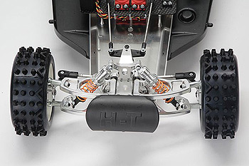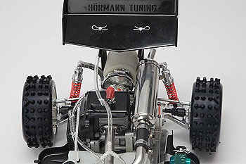 A muffler made from stainless steel. The smooth running ball bearings, a very stable and durable differential. The almost indestructible rubber spoiler, and the equally robust rims with aluminium reinforcements.