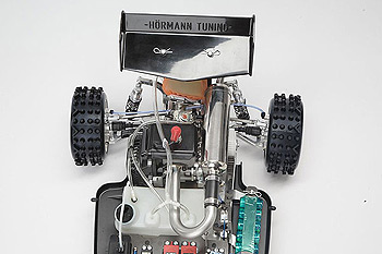 Zahlreiche Merkmale wurden geändert um das Fahrzeug noch wettbewerbsfähiger zu machen. Im Unterschied zum HT2 ist die im Frontbereich abgewinkelte Chassisplatte mit einem längeren Radstand von 535mm verbaut und die Vorder-/ Hinterachse sind mit breiteren Querlenkern für eine stabilere Kurvenlage ausgestattet. Progressive Federn für die Hinterachse, deachsierte Aluminium-Achsschenkel mit Bremsenaufnahme auf der Vorderachse, der Motor-Schnellwechsler, RN-Tuning Off-Road-Filter, Kohlefaser Servoplatte für 4 Servos, Kohlefaser Akkuhalterung und die Stahl-Radmitnehmer sind Ausstattungsdetails die gerade im Wettbewerb einen hohen Grad zur Servicefreundlichkeit beitragen.
